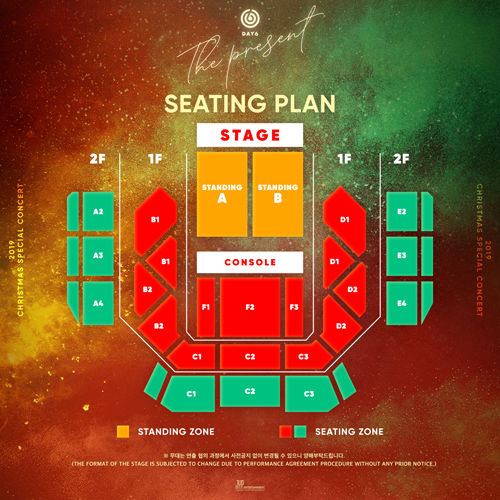 1. 해당 좌석은 무대 양쪽 사이드 구역으로 각도상 무대 전체를 보시기에 시야적으로 제한이 있는 구역입니다. 일반 좌석 대비 공연 관람에 불편을 느끼실 수 있으니, 이 점 충분히 양지하시어 예매 진행을 부탁드립니다.