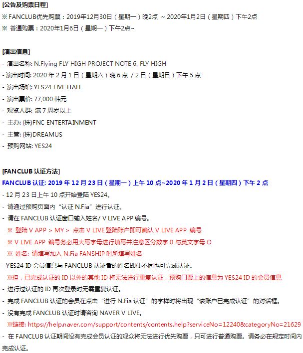 - 예매 페이지 내 ‘N.Fia 인증하기’를 통해 팬클럽 인증을 받아주시기 바랍니다.