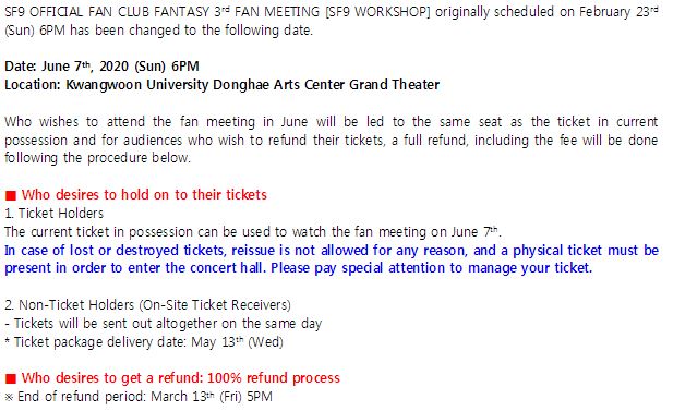 6월 팬미팅의 관람을 희망하시는 분들은 소지하신 티켓으로 동일 좌석 입장 안내를 도와드릴 예정이며,