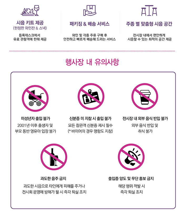 공연 제목 : 2020 서울국제주류박람회 공연 기간 : 2020.06.12 ~ 06.14 티켓오픈 공연기간 : 03.12 ~ 04.11 (1차판매) / 04.13 ~ 06.11 (2차판매) 공연 시간 : 12.13일 -> 11:00~19:00 / 14일->11:00~18:00 공연 장소 : 코엑스 C홀 티켓 가격 : 1차판매 : 17,500원 / 2차판매 : 20,000원