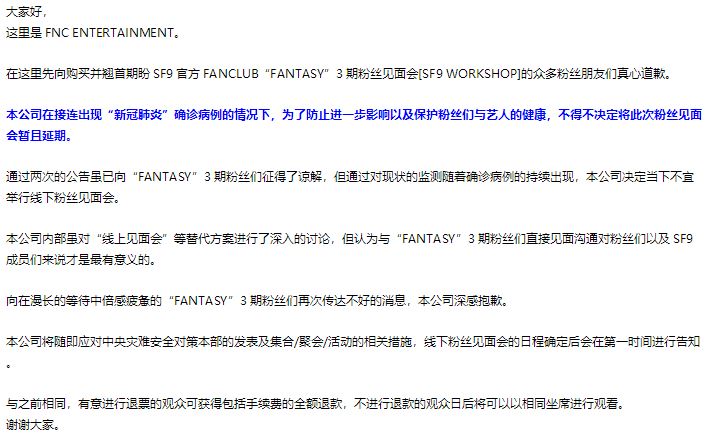 Various ways were discussed internally, such as replacing it with online fanmeeting, however we have come to the conclusion that meeting and communicating in person with 3rd FANTASY is the most meaningful way for everyone and SF9.