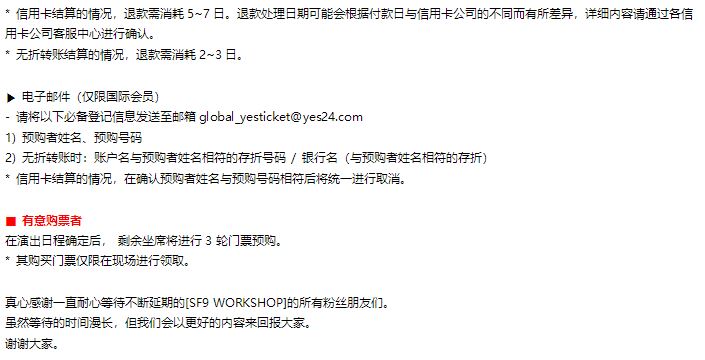 환불을 원하지 않는 관객 분들은 추후 예정된 팬미팅에 동일 좌석으로 입장을 도와드릴 예정입니다.