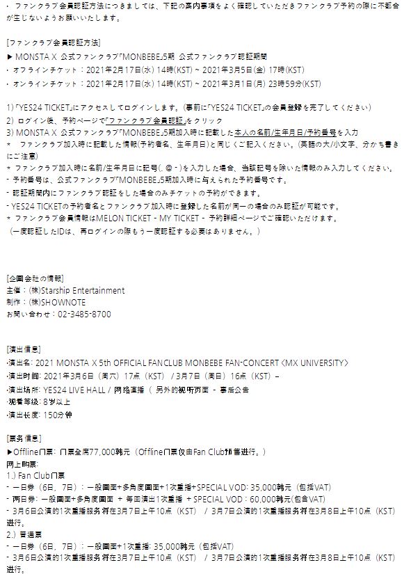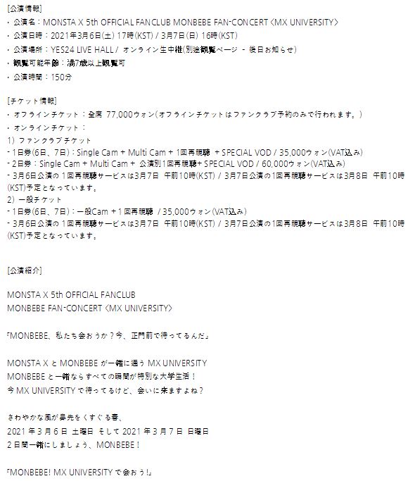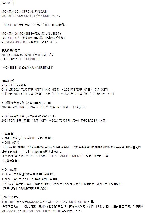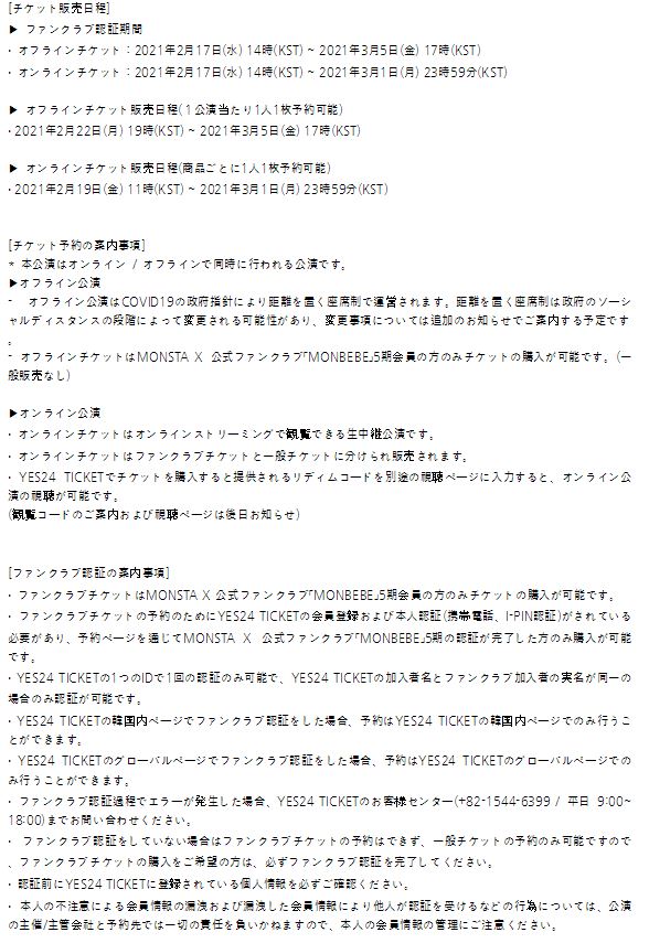 - Offline tickets are available only for MONSTA X 5th OFFICIAL FANCLUB MONBEBE.