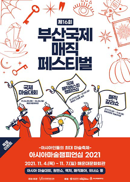 제16회 부산국제매직페스티벌이 돌아왔습니다. Fall In Magic 마술에 빠지다… 7개의 렉쳐, 2개의 원맨쇼, 피즘아시아로 가는 마지막 출전권을 지급하는 마술대회! 이 모든 공연을 해운대문화회관 해운홀, 고운홀 6월 5일(토)~5월 6일 (일)에 진행될 예정입니다 6월에 만나요~