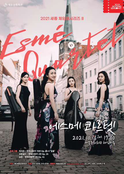 세계 최고의 권위를 자랑하는 ‘런던 위그모어 홀 국제 현악 4중주 콩쿠르’ 에서 한국인 실내악단 최초로 우승하며 세계무대에 혜성처럼 등장한 여성 현악 4중주단 ‘ 에스메 콰르텟’ 의 무대입니다.