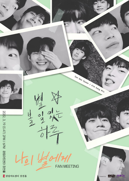 공연 제목 : 2022 나의 별에게 팬미팅 '별 볼 일 있는 하루(A STARRY DAY)' 공연 기간 : 2022년 3월 19일 공연 시간 : 14시, 18시 공연 장소 : 광림아트센터 장천홀 티켓 가격 : 1층 88,000원 / 2층 77,000원 관람 연령 : 8세 이상