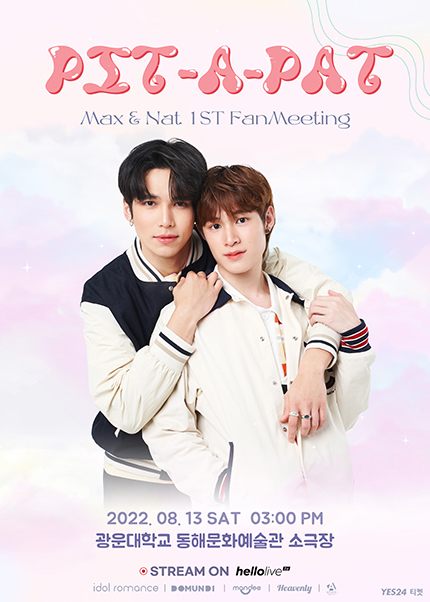 공연 제목 : MAX&NAT 1st FanMeeting [PIT-A-PAT] 공연 기간 : 2022. 08. 13 (토) 공연 시간 : 15:00 공연 장소 : 광운대학교 동해문화예술관 소극장 티켓 가격 : VVIP 240,000원 / VIP 180,000원 / S석 160,000원 / A석 130,000원
