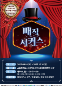 제17회 부산국제매직페스티벌 -매직서커스- -일정 : 9.3(토)~10.30(일) 매주 토,일(9.9 금 / 10.3 월 / 10.10 월) 공연) 11:30 / 14:00 체험) 11:00~15:00 -보호자의 체험유무와 관계없이 티켓을 구매하셔야 입장 가능합니다. -만 3세 이하 아동의 경우 증빙서류 지참 시 무료 입장