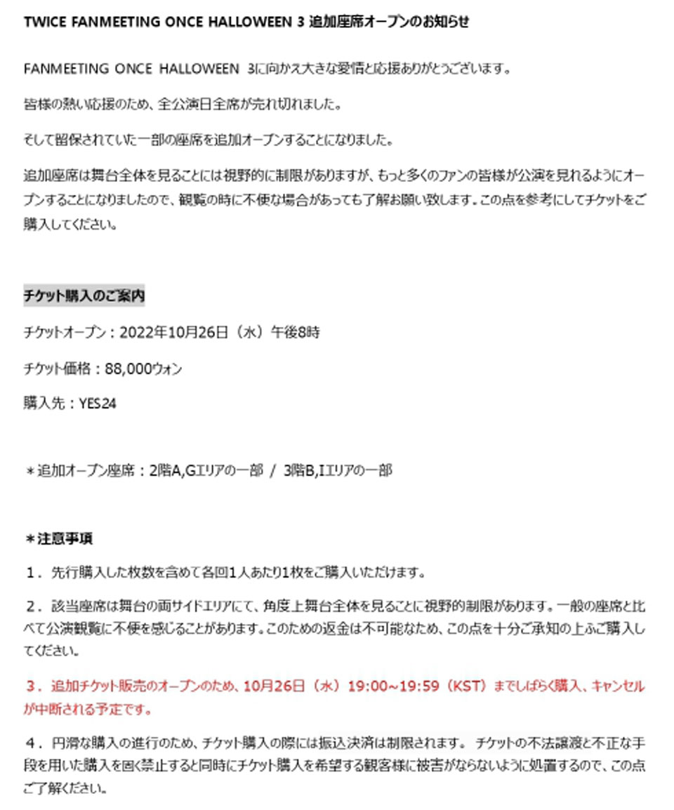 TWICE FANMEETING ONCE HALLOWEEN 3 Additional Seating Open Notice