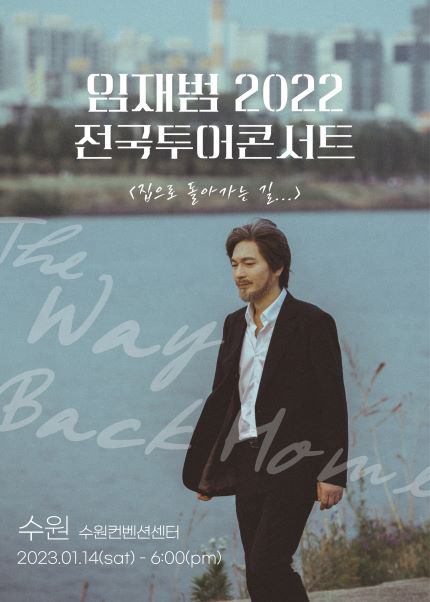 - 공 연 명 : 2022 임재범 전국투어콘서트 - 수원 - 공연일정 : 2023년 1월 14일(토) - 공연시간 : 토요일 오후 6시 - 공연장소 : 수원컨벤션센터 - 티켓가격 : VIP석 154,000원 / R석 143,000원 / S석 132,000원 / A석 110,000원 - 관람시간 : 약 120분 - 관람연령 : 만 7세 이상 관람가