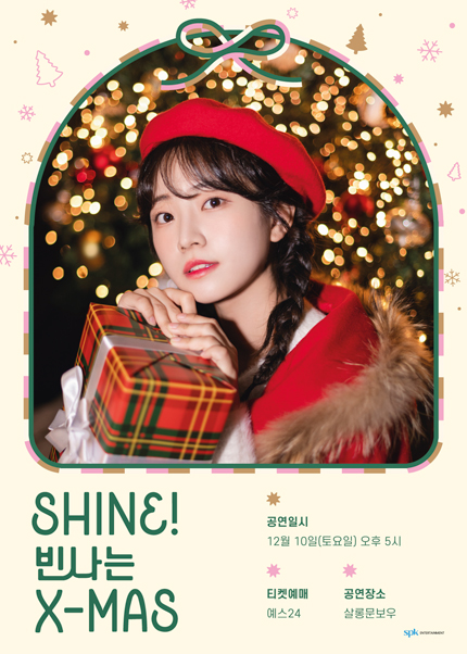 공연 제목 : Shine! 빈나는 X-MAS 공연 기간 : 2022년 12월 10일 공연 시간 : 오후 5시 공연 장소 : 서울 마포구 동교로 12안길 36 모드빌딩 1층 살롱문보우 티켓 가격 : 44,000원 (기타 : 전체관람가, 90분)