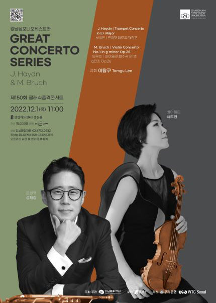 이번 공연은 강남심포니오케스트라 이탐구 부지휘자의 지휘 아래 맑고 경쾌한 트럼펫의 음색을 느낄 수 있는 ‘하이든 트럼펫 협주곡 E♭장조’ 와 독일 낭만주의와 로맨틱한 정서가 돋보이는 ‘브루흐 바이올린 협주곡 제1번 g단조 Op.26’ 를 연주를 준비하였고, 예술콘텐츠 기획자이자 작가인 이지혜가 콘서트가이드로 마이크를 잡아 더욱 유익하고 유쾌한 작품 해설로 선보일 예정이다.