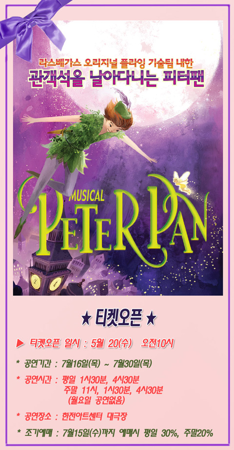 가족뮤지컬 "피터팬" (라스베가스 공연기술팀 내한) - 서울공연 티켓오픈 안내입니다.
