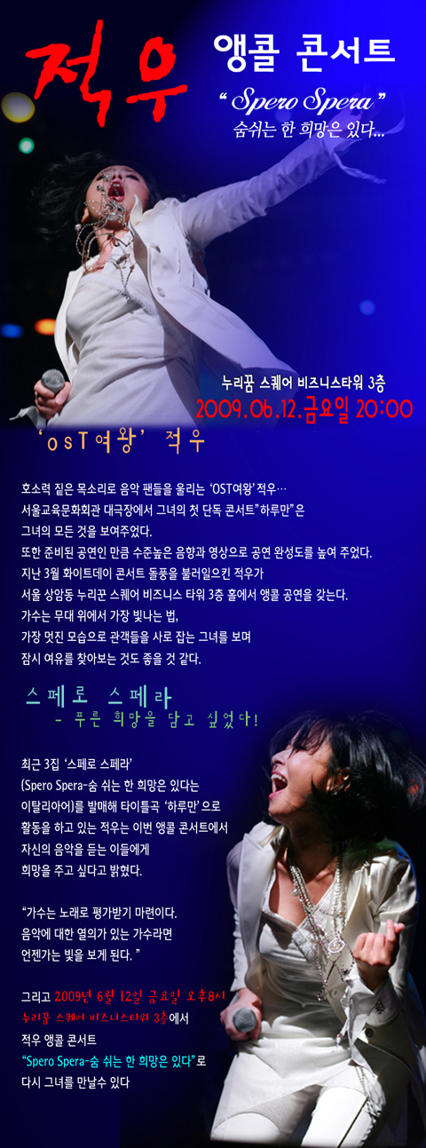 2009 적우 앵콜 콘서트 “Spero spera”숨쉬는 한 희망은 있다… 티켓오픈 안내입니다.
