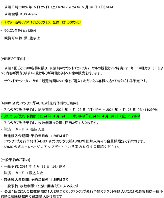 - Fanclub Presales Ticketing Limit: Ticket purchase is limited to 2 ticket per person per show