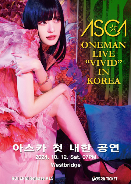 공연 제목 : ASCA Oneman Live "VIVID" in Korea 공연 기간 : 2024년 10월 12일 공연 시간 :19시 공연 장소 : 웨스트브릿지 티켓 가격 : 88,000원