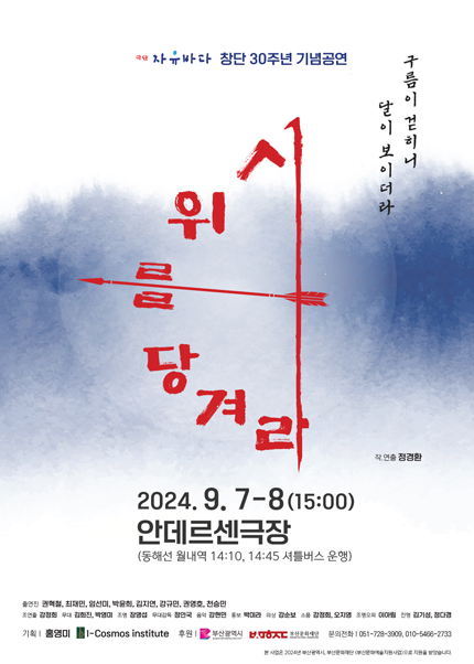 연극 <시위를 당겨라> 공연날짜: 2024년 9월 7일~8일 / 오후 3시 공연장소: 안데르센극장 (기장군 장안로 211) ? 동해선 월내역에서 셔틀 운행 (오후 2시10분/ 2시45분) 티켓가: 일반 20,000원, 청소년 12,000원