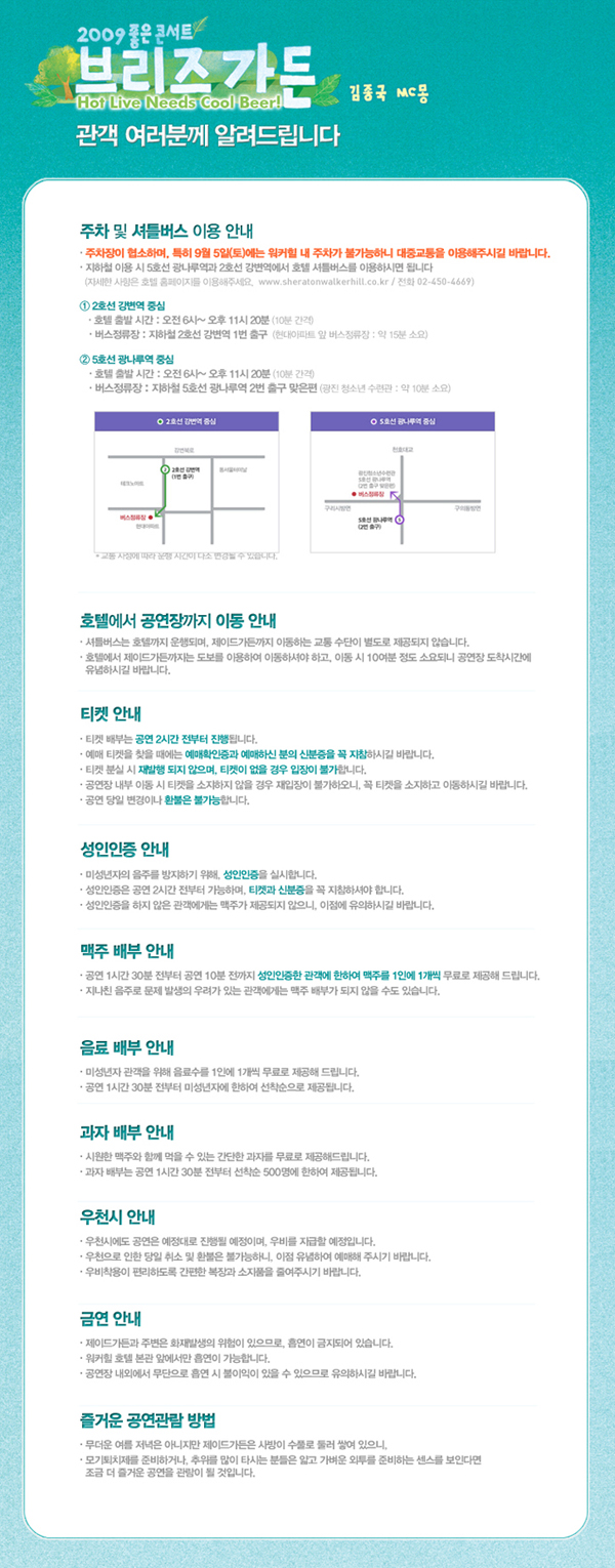 2009 좋은콘서트 브리즈가든 김종국 MC몽 공연 관객안내입니다.