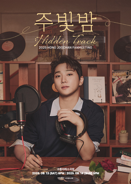 - 공연명 : 2025 HONG JOOCHAN FANMEETING [주빛밤 : Hidden Track] - 공연일시 : 2025년 9월 13일(토) 오후 6시, 2025년 9월 14일(일) 오후 5시(KST) - 공연장소 : 구름아래소극장 - 티켓가격 : VIP 110,000원 / R 99,000원 - 관람시간 : 100분 - 결제수단 : 카드결제 (무통장 입금 불가) - 관람등급 : 미취학 아동 입장 불가