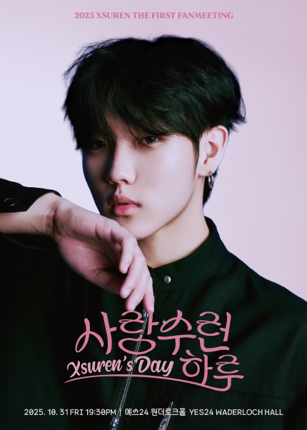 공연 제목 : 2025 Xsuren 1st Fanmeeting ‘사랑수런 하루‘ 공연 기간 : 2025.10.31 (금) 오후 7시 30분 1회 공연 장소 : 예스24 원더로크홀 티켓 가격 : 전석 66,000 원