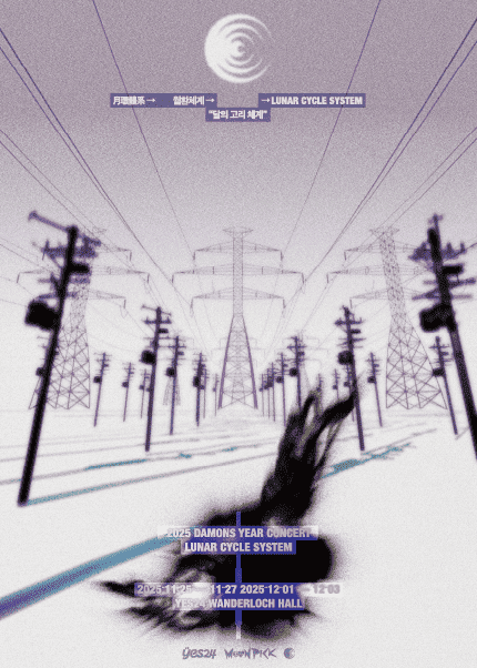 공연 제목: 2025 데이먼스 이어 단독공연 《Lunar Cycle System》 공연 기간: 2025년 11월 25, 26, 27일(화, 수, 목) / 2025년 12월 01, 02, 03일(월, 화, 수) 공연 시간: 오후 8시 공연 장소: 예스24 원더로크홀 티켓오픈 일정: 2025년 10월 28일(화) 오후 8시 티켓 가격: 전석 77,000원 관람연령: 8세 이상 관람시간: 80분