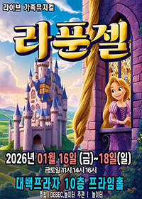 공연기간 : 2026년 1월 16일(금) ~18일(일) 공연시간 : 금토일 11시, 14시, 16시 공연장소 : 대백프라자 10층 프라임홀 티켓가격 : 정가 30,000원 - 24개월 이상 구매합니다. - 좌석배치도 O열에서 K열 까지는 바닥레벨이 평평한 좌석구역입니다.(예매시 참고 바랍니다) - 1인 1티켓을 적용합니다.(24개월 미만 무료입장, 부모동반 입장시 적용가능-증빙서류지참) - 공연중에는 사진촬영,동영상촬영,음식물반입이 금지되어 있습니다 - 공연시작 30분전부터 티켓박스에서 현장예매,티켓수령 가능합니다 - 어린이보조쿠션이 준비되어 있습니다 - 당일 변경 및 취소 불가 (공연당일 현장에서의 취소, 변경, 환불은 불가하며, 개인사정, 공연 중 울고보채는 아이로 퇴장하는 경우에도 환불은 불가합니다.) - 주차 3시간무료