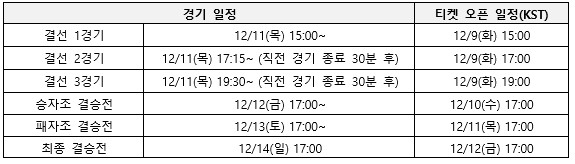 ▶ 경기 및 티켓 오픈 일정