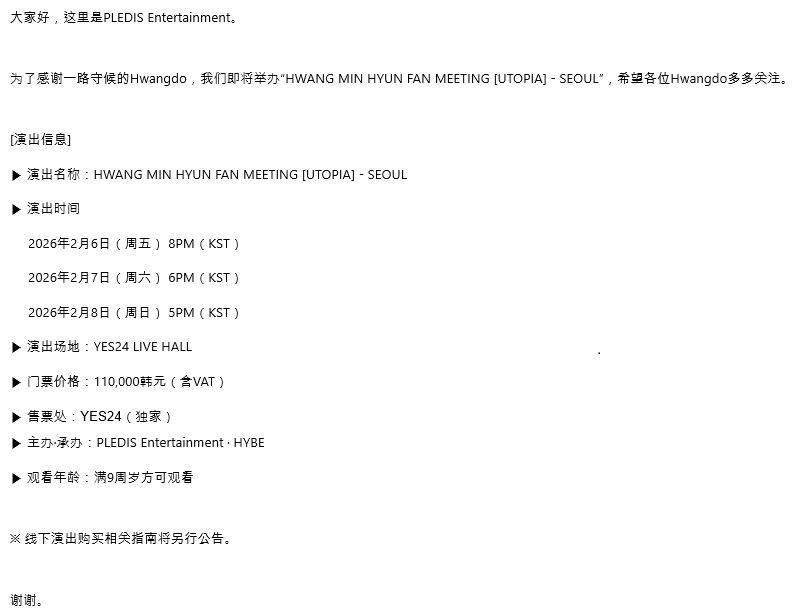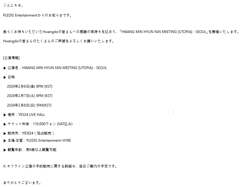 We are pleased to announce that we will be holding the “HWANG MIN HYUN FAN MEETING [UTOPIA] - SEOUL” to express our gratitude to Hwangdo for waiting so patiently.