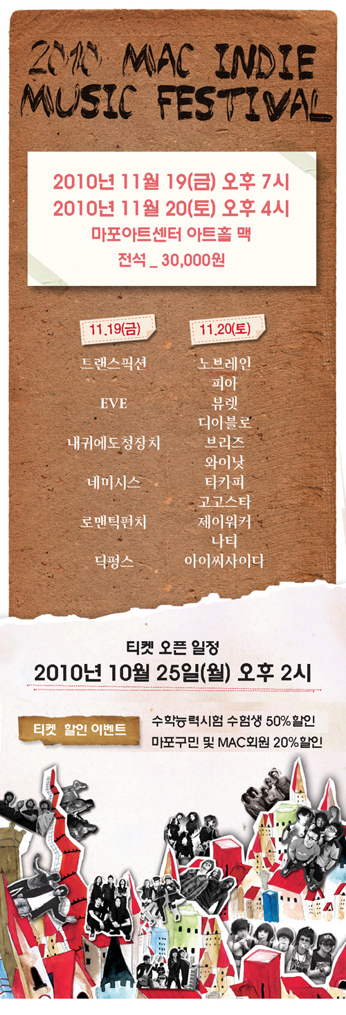2010 MAC 인디 뮤직 페스티벌 티켓오픈안내 입니다.