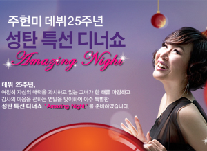 데뷔 25주년, 여전히자신의 매력을 과시하고 있는 그녀가 한 해를 마감하고 감사의 마음을 전하는 연말을 맞이하여 아주특별한 성탄특선디너쇼 ‘Amazing Night ’를 준비하였습니다.