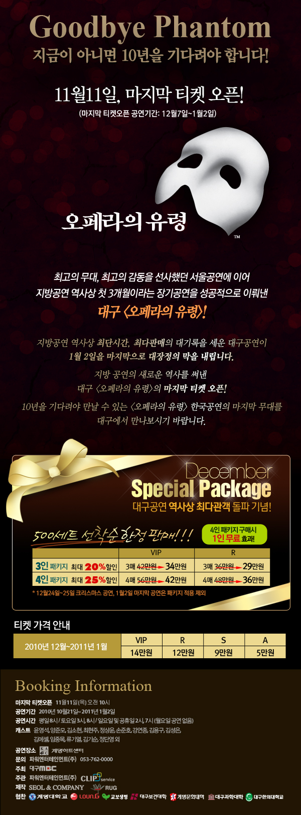 <b>[오페라의 유령-대구] 마지막 티켓오픈 안내</b>