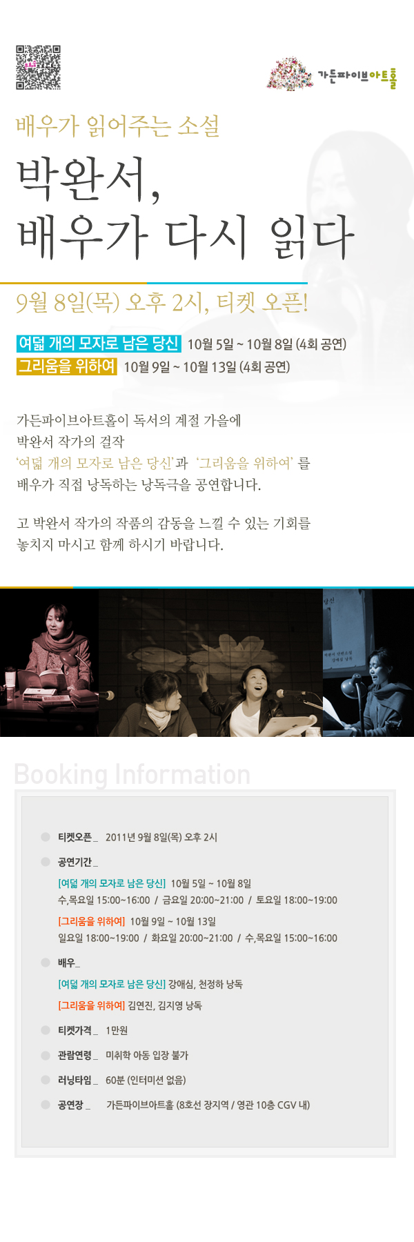 [박완서, 배우가 다시 읽다] 티켓 오픈 안내입니다.