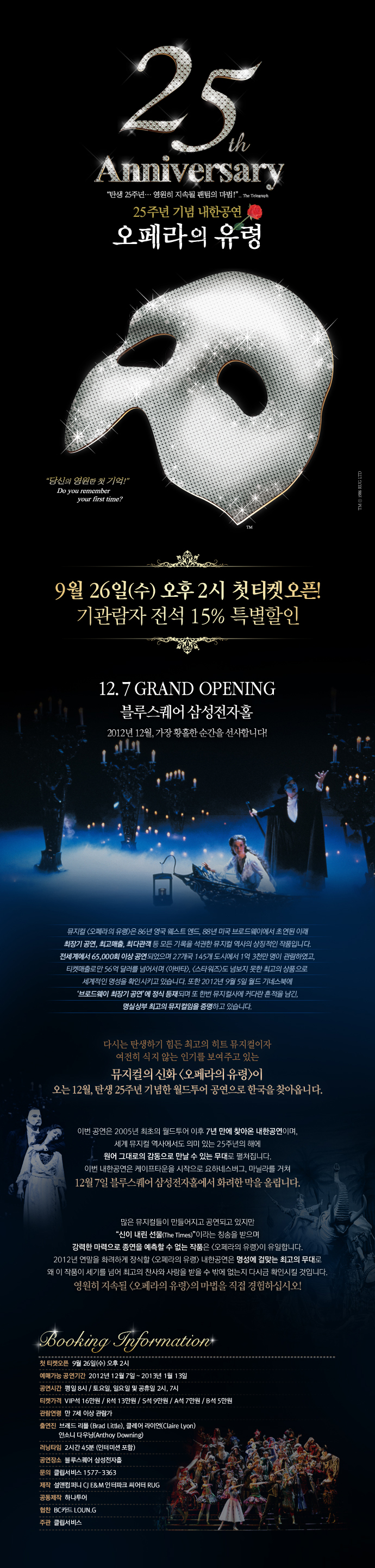 공연시간 : 평일 8시 / 토요일, 일요일 및 공휴일 2시, 7시