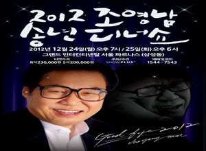2012년 크리스마스를 맞아 열리는 조영남 디너쇼에서 화려한 만찬과 공연을 편안히 즐기시기 바랍니다.