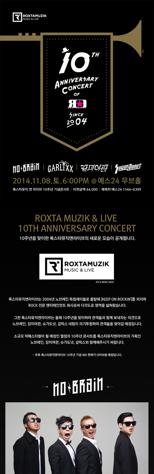 -공연일시 : 2014.11.08.(토) -공연장소 : YES24 무브홀 -좌석 및 티켓가격 : 전석 스탠딩석 44,000원 -관람등급 : 전연령층 -관람시간 : 오후 6시 ~ 오후 10시 (예정) 총 240분 -출연진 : 노브레인, 장미여관, 갈릭스, 슈가도넛
