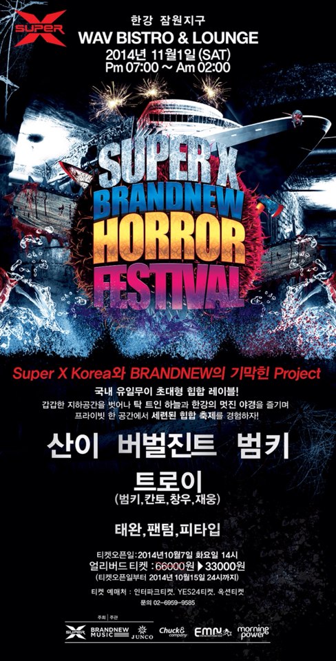 호러 페스티벌의 라인업으로 국내 힙합계의 슈퍼스타인 산이, 버벌진트, 범키, 트로이, 태완까지 브랜뉴뮤직 아티스트들과 함께 막강한 라인업으로 연출하였다.