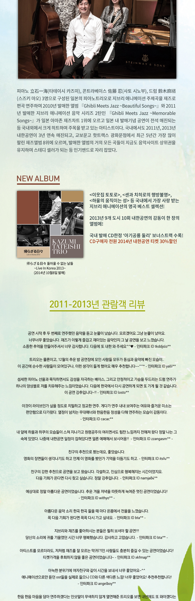 [의정부]2014 카즈미 타테이시 트리오 내한공연 - 지브리, 재즈를 만나다 - 티켓 오픈 안내