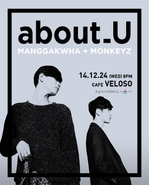 망각화와 몽키즈의 about_U 너에 대해. 너에게 하고 싶은 이야기, 너에게 듣고 싶은 이야기. . 두 팀이 함께 준비한, 관객과 함께 만들어가는 서로에 대한 이야기. 손꼽아 기다려온, 우리들만의 이야기를 나누는 크리스마스 이브의 밤. 특별한 당신과 함께하기 위한 초대장을 보냅니다.