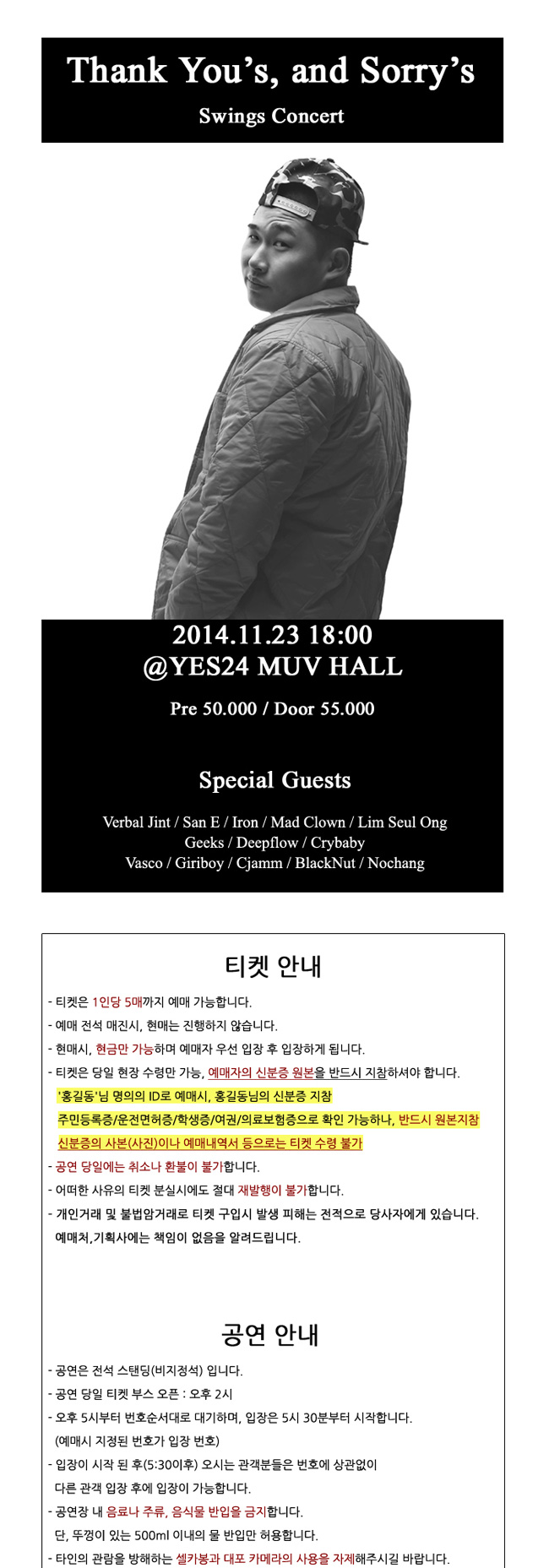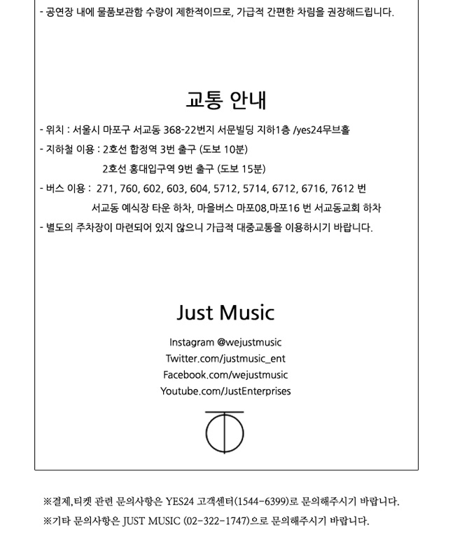 티켓: 예매 50.000원 / 현매 55.000원 (예매 매진시, 현매 진행 없음)