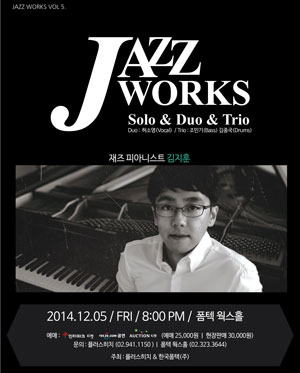 플러스히치와 한국폼텍㈜이 함께 기획한 매달 첫째 주 금요일 선보이는 JAZZ WORKS 콘서트의 다섯번째 주인공은 네덜란드에서 재즈를 공부하고 최근에 귀국한 피아니스트 김지훈이다. 암스테르담 콘서바토리에서 롭 반 바벨, 카렐 보에리를 사사했으며 2013년 유럽의 권위 있는 재즈 컴피티션 라이든 재즈 어워드(Leiden Jazz Award)에서 당당히 우승하는 등 현지에서 많은 주목을 받아왔다.