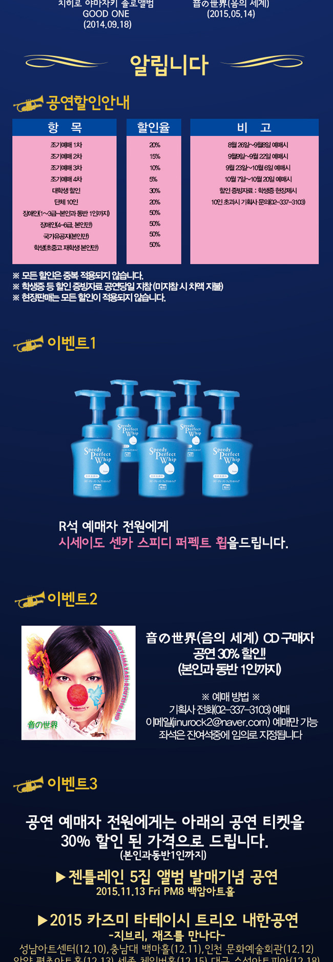 -音の世界(음의세계)CD 소지자 본인과 동반 1인까지 30%