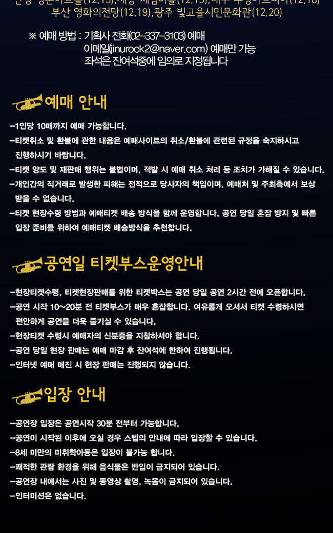 기획사 전화(02-337-3103)예매 혹은 이메일(jinurock2@naver.com)예매만 가능