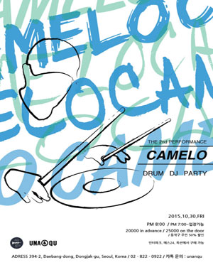 공연 제목 : CAMELO DRUM&DJ PARTY 공연 기간 : 2015.10.30 공연 시간 : 8:00 PM ~9:00 PM 공연 장소 : 우나앤쿠 티켓 가격 : 20000원 인터넷예매 / 25000원 현장