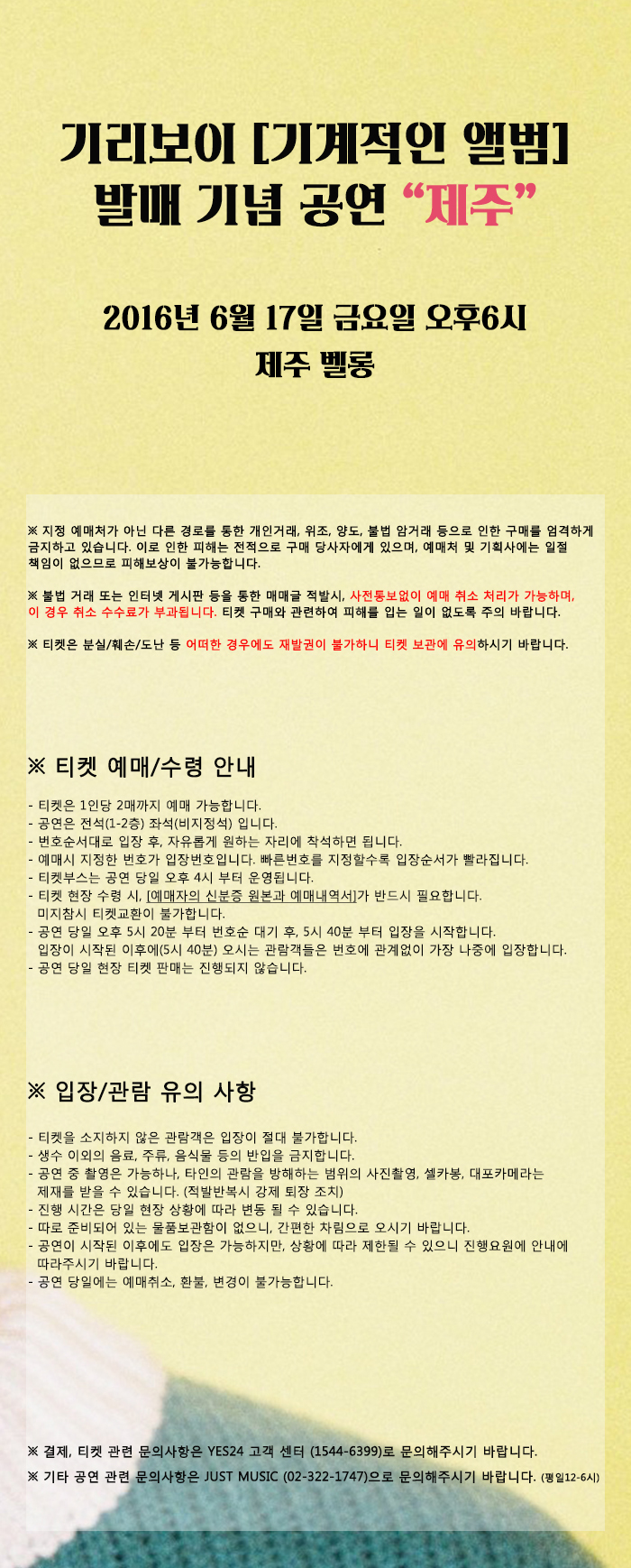 공연 기간 : 2016년 6월 17일 금요일 공연 시간 : 오후 6시 공연 장소 : 제주 벨롱 티켓 가격 : 전석 40.000원 관람 시간 : 약 60분 관람 연령: 만 12세 이상