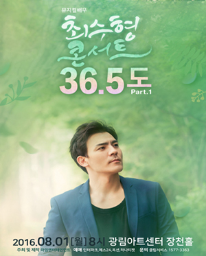 뮤지컬배우 최수형의 콘서트 ‘36.5도’ 가 8월1일 8시 서울 광림아트센터 장천홀에서 열린다.