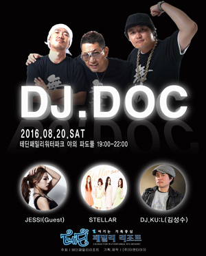 * 공연명 : DJ.DOC와 함께 테딘풀파티 * 공연일시 : 2016년 8월 20일(토) * 공연장소 : 테딘패밀리워터파크 야외 토네이도풀 * 티켓금액 : [워터파크 오후권 + 풀파티패키지] 대인(중학생~성인) 145,000원 소인(36개월 ~ 초등학생) 110,000원 * 관람등급 : 36개월 이상 관람가 * 관람시간 : 19:00 ~ 22:00