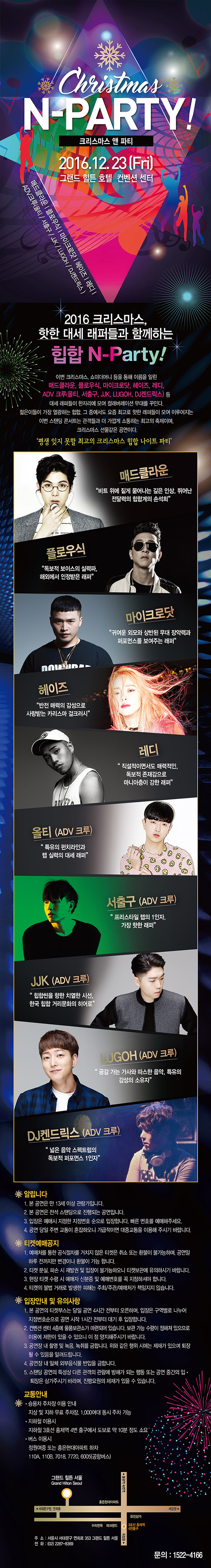 공연 일시 : 2016. 12. 23 금요일 오후 8시 (1일 1회 공연) 공연 장소 : 그랜드힐튼서울 컨벤션센터 티켓 가격 : 전석 77,000원(VAT포함) 관람 연령 : 만 13세 이상
