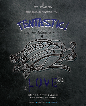 - 공연 제목 : 펜타곤 미니콘서트 [ TENTASTIC - vol.1 ] - 공연 기간 : 2016년 12월 6일(화) - 공연 시간 : PM 08:00 - 공연 장소 : 예스24 라이브홀 - 티켓 가격 : 55,000 (VAT포함) - 관람연령 : 만 7세 이상 - 관람시간 : 100분