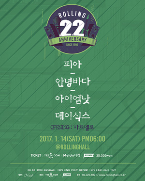 롤링 22주년 기념 공연 vol.4 피아X안녕바다X아이엠낫X데이식스 티켓 오픈 안내입니다.