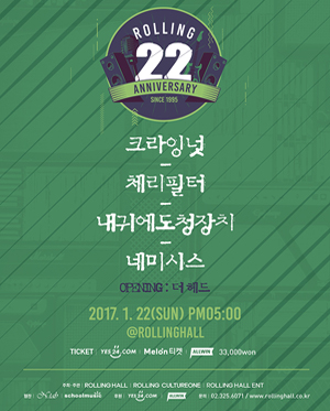 공연 제목 : 롤링 22주년 기념 공연 vol.6 크라잉넛X체리필터X내귀에도청장치X네미시스
